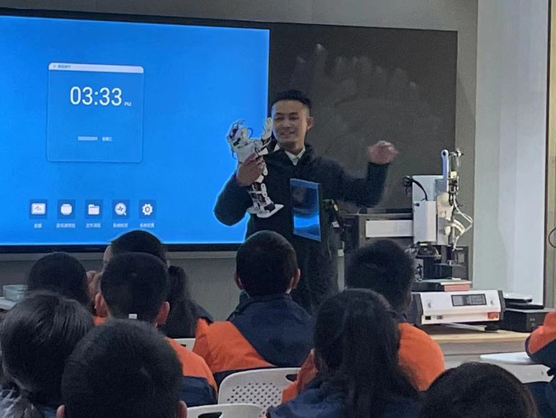 授牌仪式结束后,与会人员与40名礼嘉初中生合影留念。随后,员工们开启“教育嘉”实训课堂,走进信息工程公司、智能控制公司的专业课堂,参观学习人工智能、无人机等体验基地,与科技的近距离接触激起了员工们的动手动脑欲望。新型创新体验的模式,将职业教育理念融入基础教育,活动让更多的青少年走进战略性新兴产业、先进制造业领域,引导青少年从小培养科学、合理的职业教育价值观念,激发创新精神,点燃青少年职业梦想。