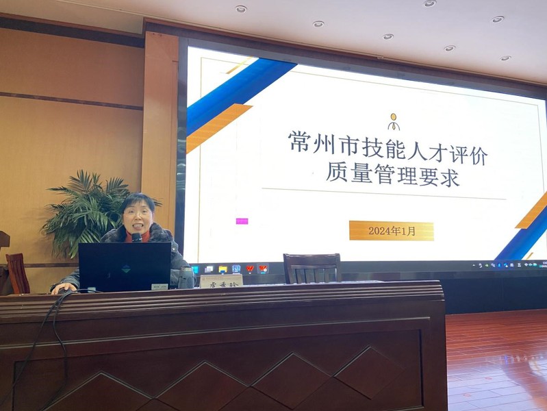高建明主任解读了职业技能人才评价政策和国家职业技能标准,黄堃部长开展技能人才评价考务管理、考评人员职责的实务培训,虞秀珍部长围绕常州市技能人才评价质量管理要求作主题培训。理论培训结束后,全体培训人员进行了结业考试。