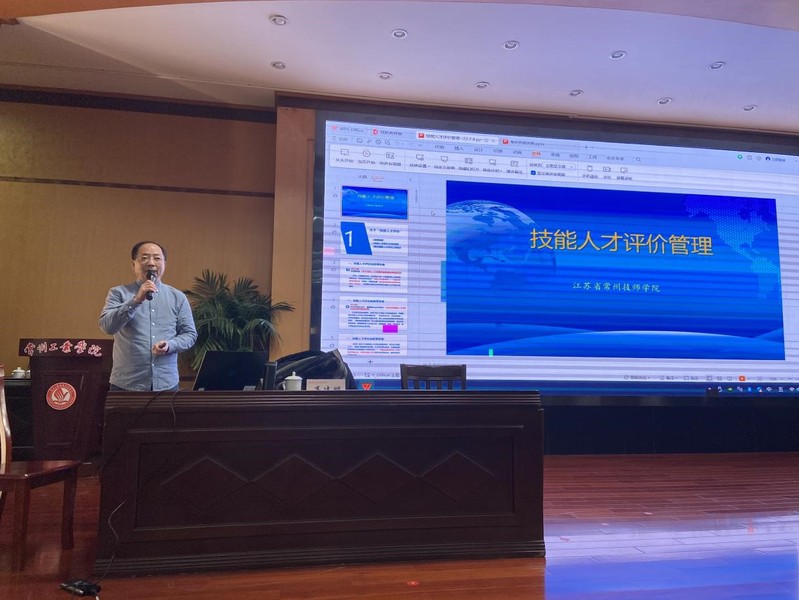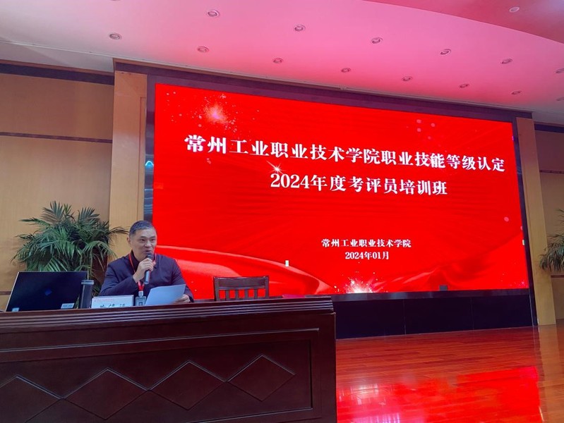 此次培训班邀请常州市职业技能鉴定指导中心竞赛管理部部长黄堃、技能评价部部长虞秀珍以及常州技师公司产教融合中心副主任高建明授课指导,tyc122cc经理黄伟福主持,来自全校共140余名教师参加了培训。